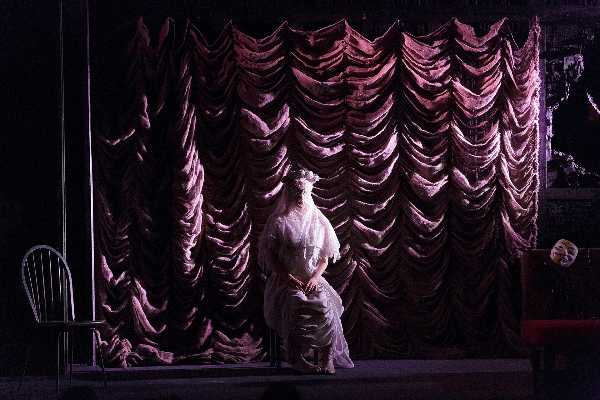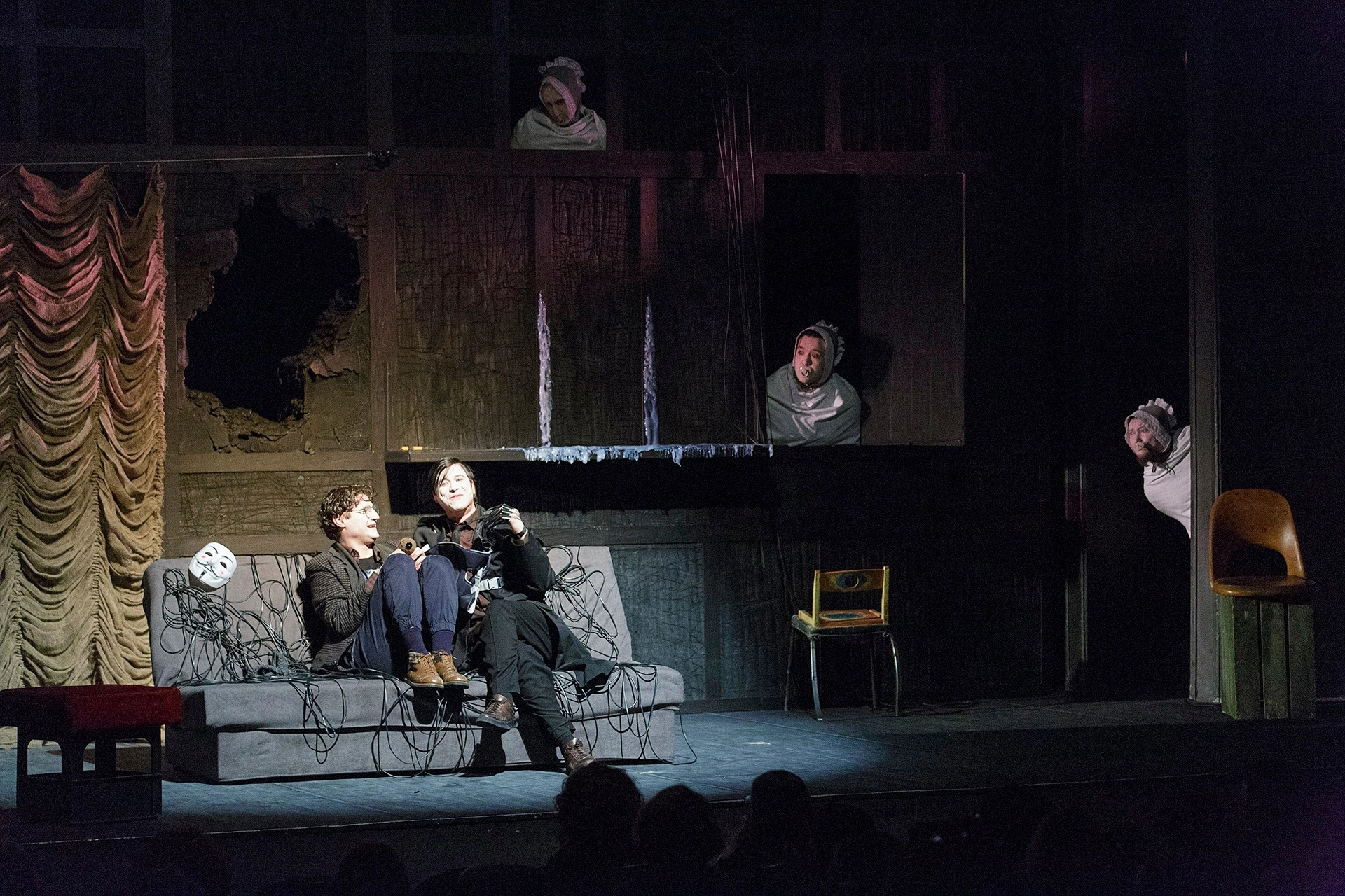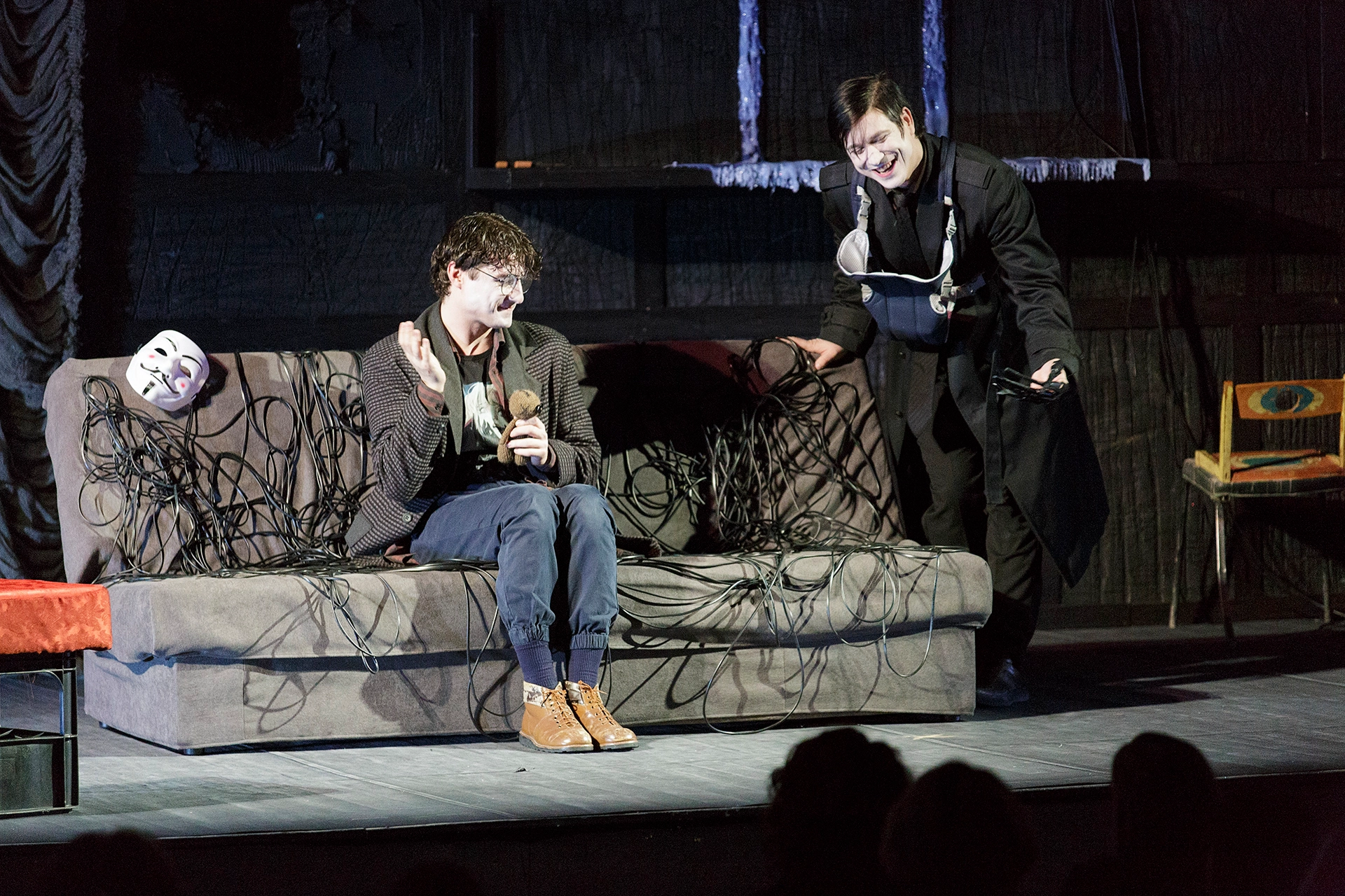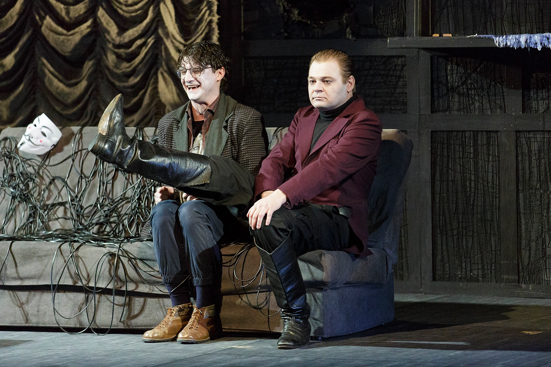 Место действия — столица. У людей от бешеной динамики города возникает выгорание душ – вот и выгоревший мир мы видим чуть ли не буквально. Из мира будто испарилась любовь. Новому миру нужны новые герои: кроткие, послушные, слабовольные, неспособные на поступки, на перемены. Из всех как-будто бы вынута душа. В этом мраке и холоде людям как никогда не хватает тепла, близости. Человеку нужен человек. Все герои пьесы говорят о женитьбе, готовятся к ней, говорят о ней, спорят, суетятся, но никто не говорит о любви. Только деньги, статус, форма. Гоголевский абсурд! В таком мире самое парадоксальное, что может произойти — живое, человеческое, тёплое чувство.